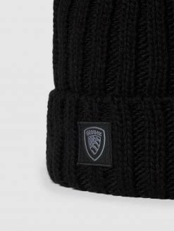 Blauer Usa Beanie In Strick-Optik – Schwarz