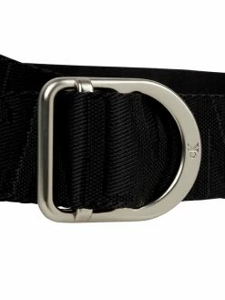 Der Gürtel von Calvin Klein Jeans ist aus Textil gefertigt. Er zeigt sich mit Logo-Muster, D-Ring-Verschluss und Kontrastbesatz.