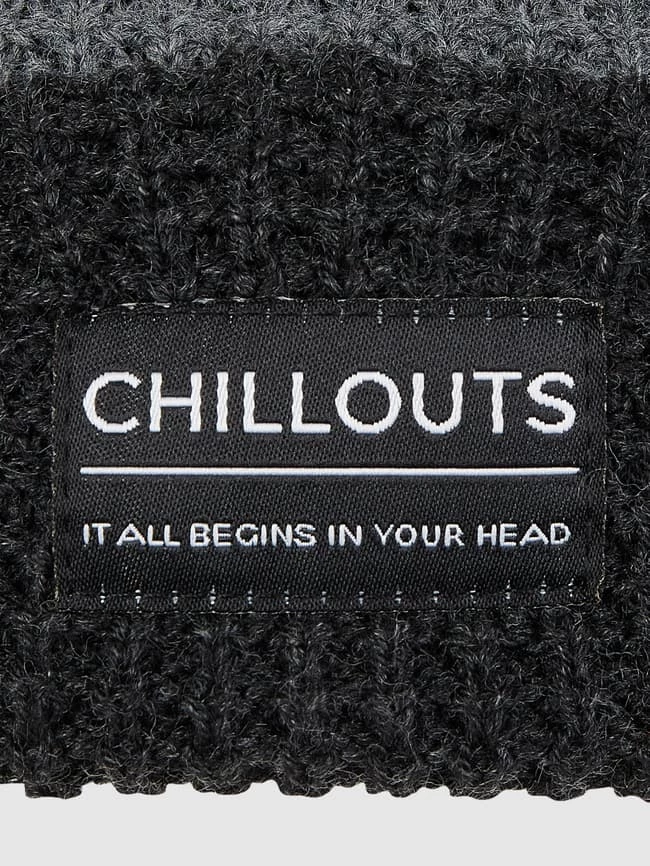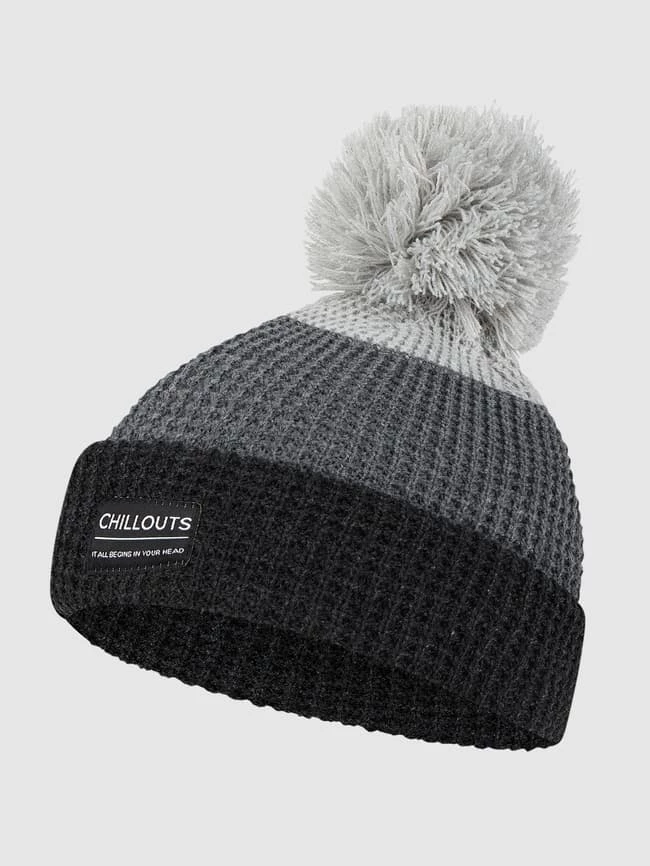 Die Pudelmütze von CHILLOUTS ist aus weichem Material gefertigt. Sie zeigt sich mit Blockstreifen, Umschlag und Logo-Aufnäher.