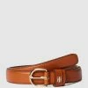 Der Ledergürtel von Calvin Klein ist aus echtem Leder gefertigt und in schmaler Form gehalten. Er zeigt sich mit Label-Detail und Dornschließe in metallic.