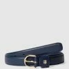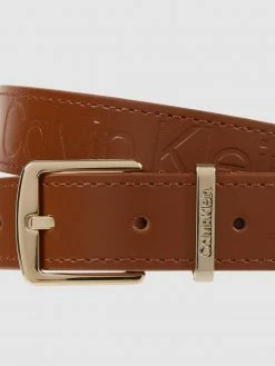 Der Gürtel von Calvin Klein ist aus Synthetik und Leder gefertigt. Er zeigt sich mit Logo-Schließe und Logo-Prägung.