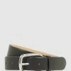 Der Ledergürtel von Calvin Klein ist aus echtem Leder gefertigt und in schmaler Form gehalten. Er zeigt sich mit Dornschließe in metallic und Label-Detail.