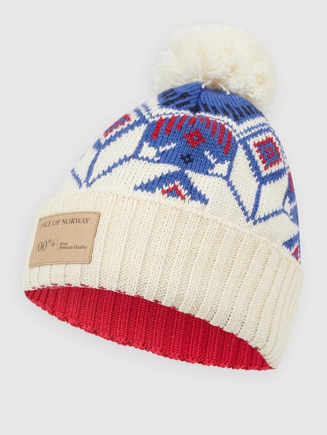Die Pudelmütze von Dale of Norway ist aus reiner Schurwolle gefertigt. Sie kommt mit Norweger-Dessin, Umschlag und Bommel.
