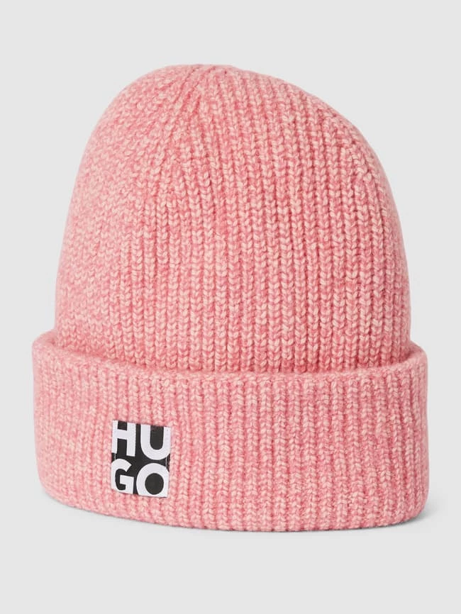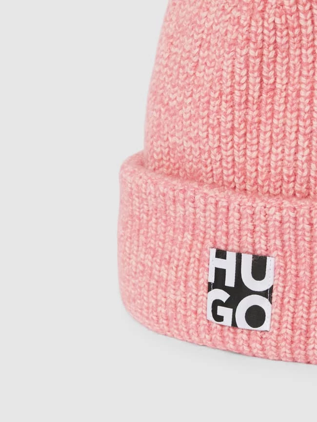 Die Beanie von HUGO ist aus einem Material-Mix mit Viskose-Anteil gefertigt. Sie zeigt sich in Strick-Optik und kommt mit Label-Patch sowie breitem Umschlag.