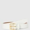 Der Gürtel von Lauren Ralph Lauren ist aus hochwertigem Rindsleder gefertigt und in schmaler Form gehalten. Er kommt in Reptil-Optik und mit Label-Applikation in metallic.