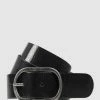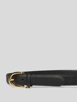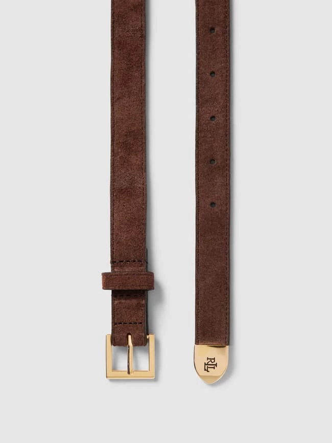 Der Gürtel von Lauren Ralph Lauren ist aus echtem Leder gefertigt. Er zeigt sich im unifarbenen Design mit Steppnähten und kommt mit Dornschließe aus metallic.