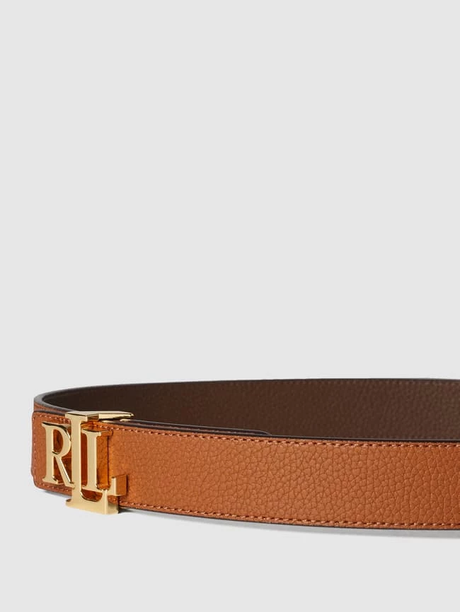 Der Wendegürtel von Lauren Ralph Lauren ist aus echtem Leder gefertigt. Er zeigt sich in schmaler Form mit feiner Narbung, Pinschließe und Logo-Applikation.