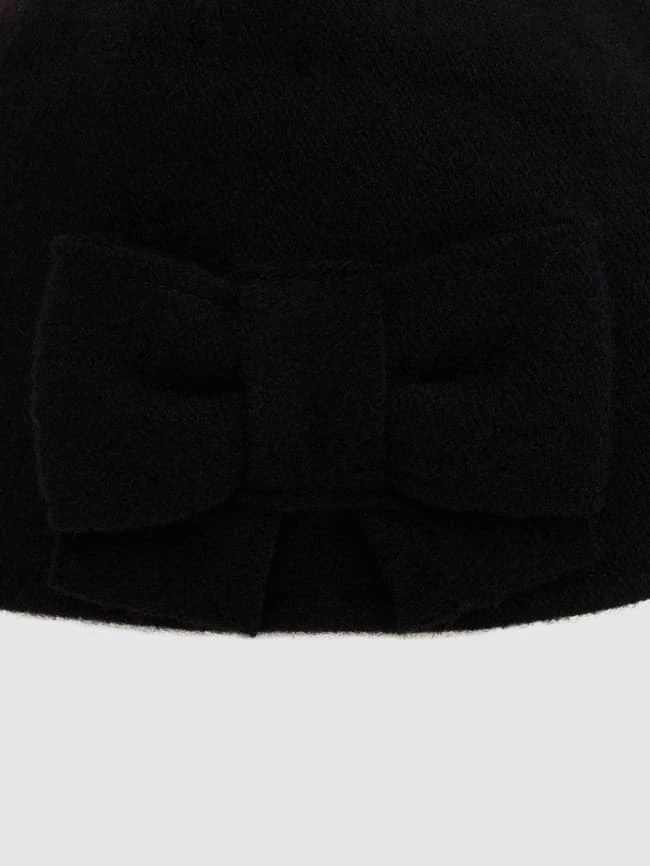 Die Mütze von Loevenich ist aus reiner Wolle gefertigt. Sie kommt mit feinem Maschenbild und Zierschleife.