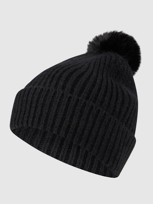 Die Pudelmütze von Loevenich ist aus strukturiertem Material gefertigt. Sie kommt mit breitem Umschlag, Bommel aus Webpelz und Logo-Applikation.