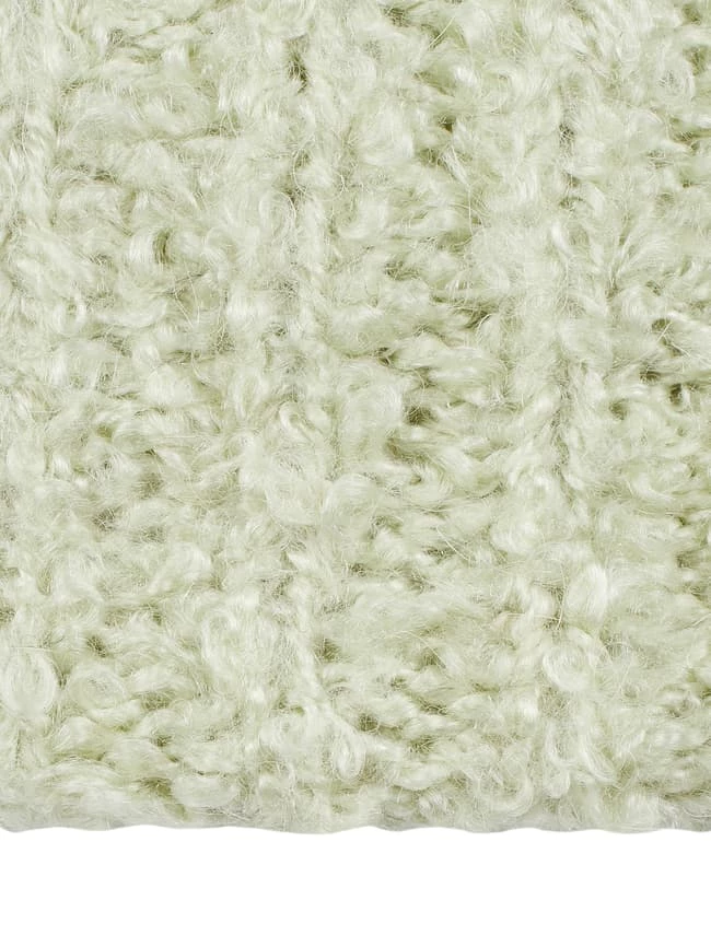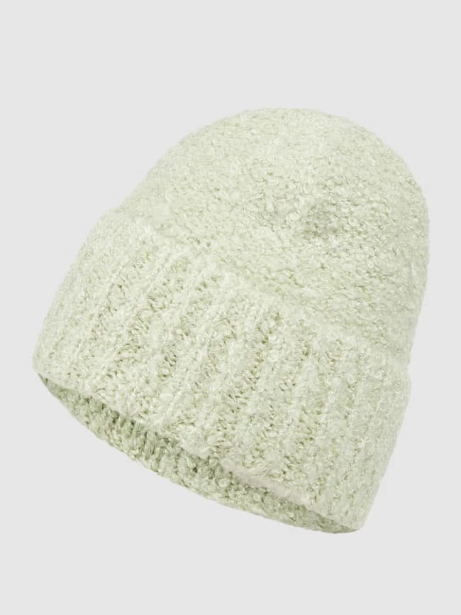 Die Beanie von MANGO ist aus einer Materialmischung mit Woll- und Alpaka-Anteil gefertigt. Sie kommt in Bouclé-Optik mit geripptem Umschlag.
