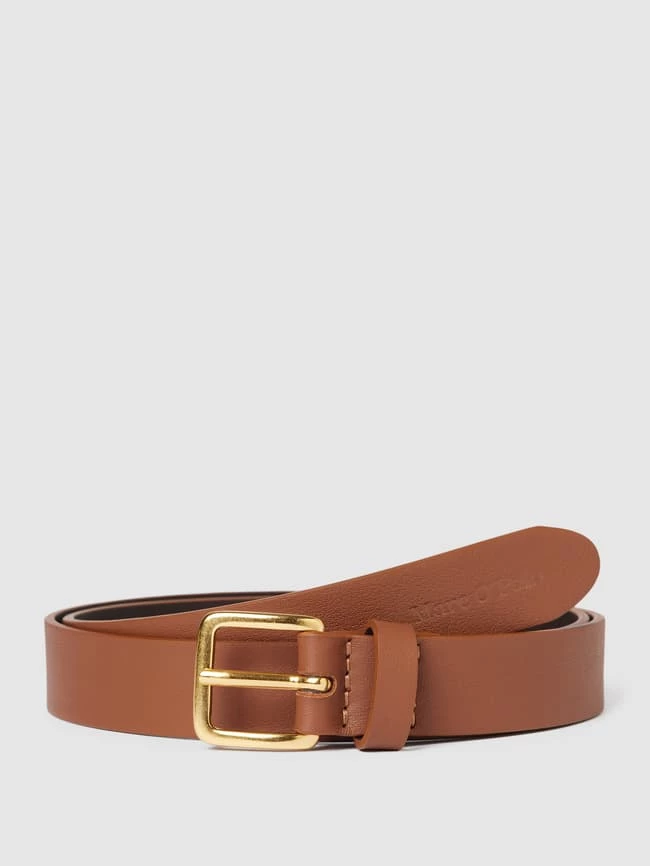Der Ledergürtel von MARC O’POLO ist aus echtem Leder gefertigt und in schmaler Form gehalten. Er kommt im unifarbenen Design mit Dornschließe und fixierter Gürtelschlaufe.