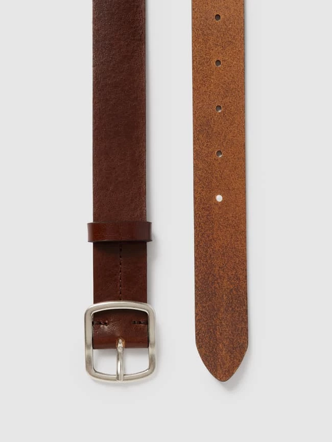 Der Ledergürtel von MARC O’POLO ist aus echtem Leder gefertigt und in schmaler Form gehalten. Er kommt im unifarbenen Design mit Dornschließe und fixierter Gürtelschlaufe.