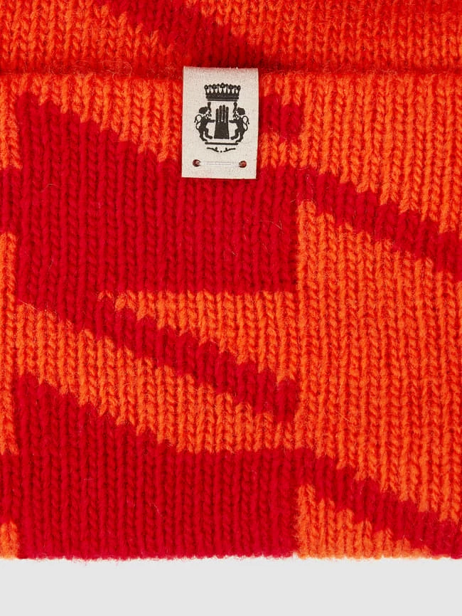 Die Mütze von Roeckl ist aus einer Wollmischung gefertigt. Sie zeigt sich mit Hahnentritt, Umschlag und Logo.