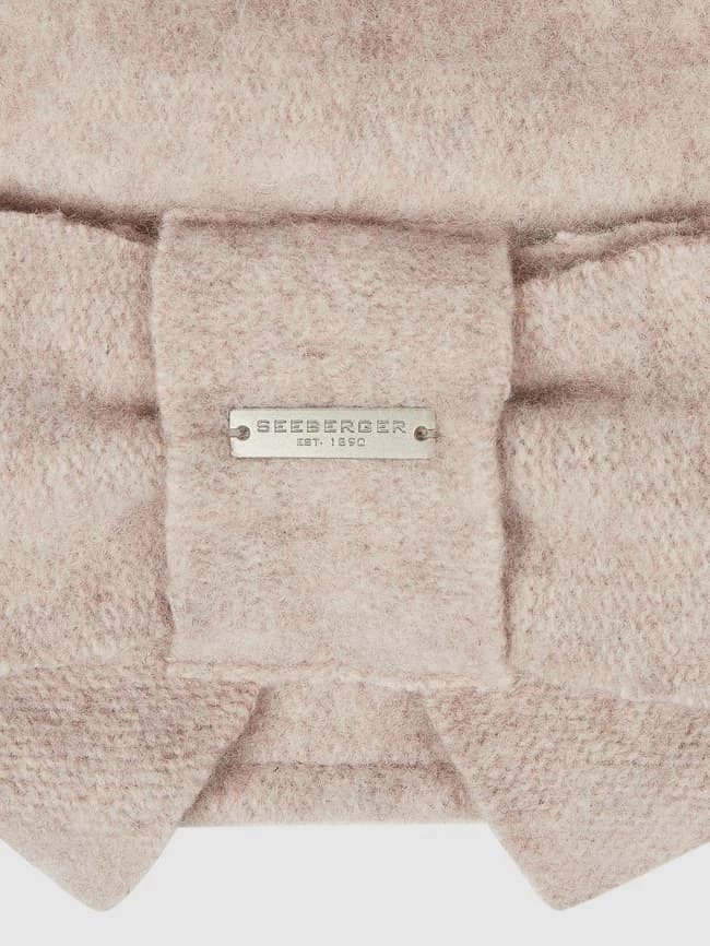 Die Mütze von Seeberger ist aus reiner Schurwolle gefertigt. Sie kommt mit Zierschleife und Logo-Applikation.