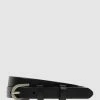 Smartes Accessoire: der Ledergürtel von Tommy Hilfiger. Er zeigt sich in breiter Form mit Dornschließe aus Metall und Logo-Applikation.