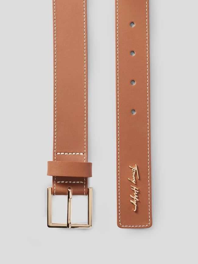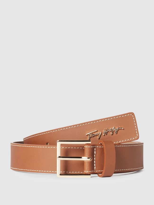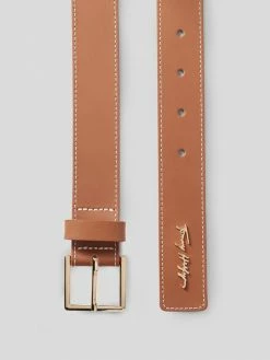 Der Ledergürtel von Tommy Hilfiger ist aus echtem Leder gefertigt und in breiter Form gehalten. Er kommt mit Dornschließe, Label-Applikation und fixierter Gürtelschlaufe.