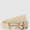Der Ledergürtel von Tommy Hilfiger ist aus echtem Leder gefertigt und in schmaler Form gehalten. Er zeigt sich mit Label-Details und Dornschließe in metallic.